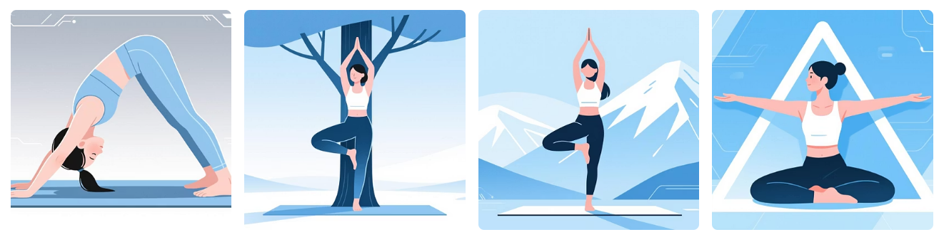 - 태양 경배 자세 (Surya Namaskar) – 전신 근육을 골고루 자극하고, 혈액순환과 신진대사를 촉진합니다.
